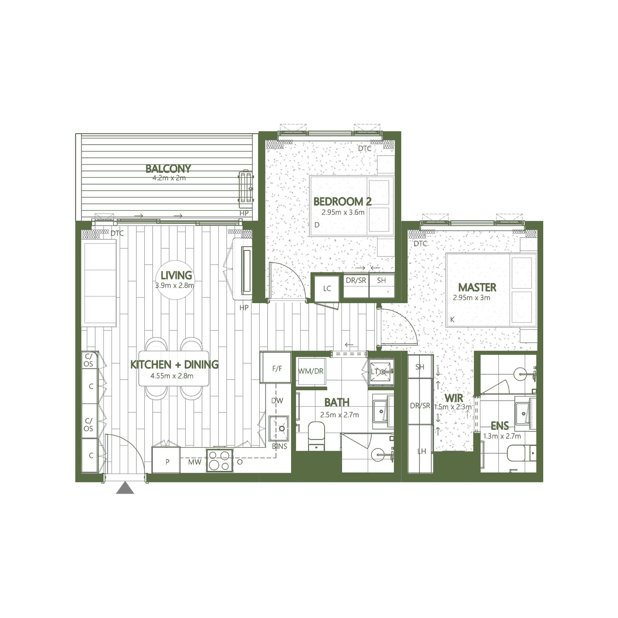 2 bedroom, 2 bathroom